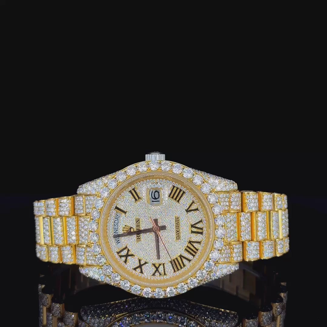 Full Iced-Out Twon Tone Oyster Belt With Roman Dial Moissanite Diamond Watch By CrownIce